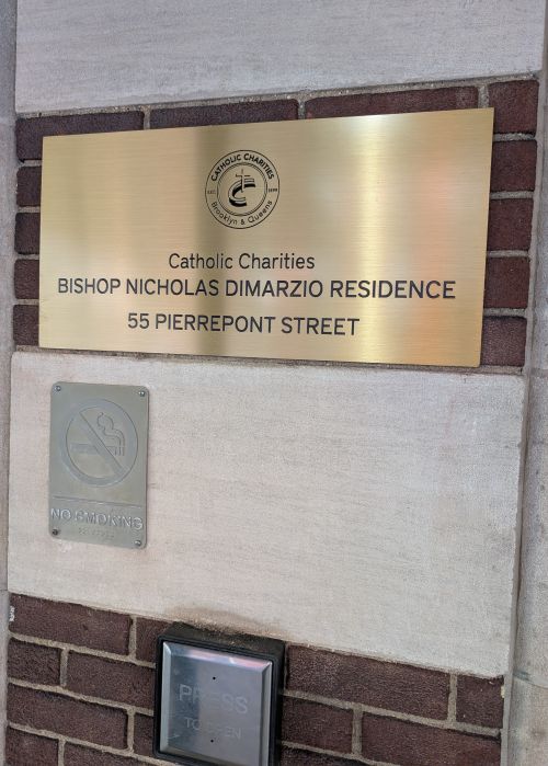 The senior residence at 55 Pierrepont Street, Brooklyn, NY, a project of Catholic Charities of the Diocese of Brooklyn, New York, has been tarnished through the use of the name BISHOP NICHOLAS A. DIMARZIO to whom the building was dedicated.