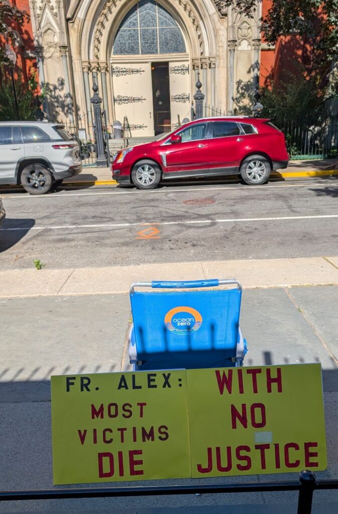 Robert Hoatson demonstrated outside Our Lady of Grace Catholic Church in Hoboken, NJ on Sunday morning, August 31, 2025 in response to Fr Alex Santora’s opinion piece in the Record newspaper last week in which he tries to claim that priests who are accused of sexual abuse are victims too.